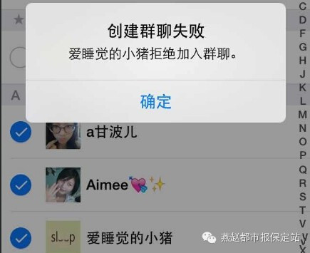 如果你新建聊天的时候出现下列情况,即一发出邀请有人拒绝加入群聊,尔文就坦白告诉你这个噩耗吧,对方把你拉黑名单了!